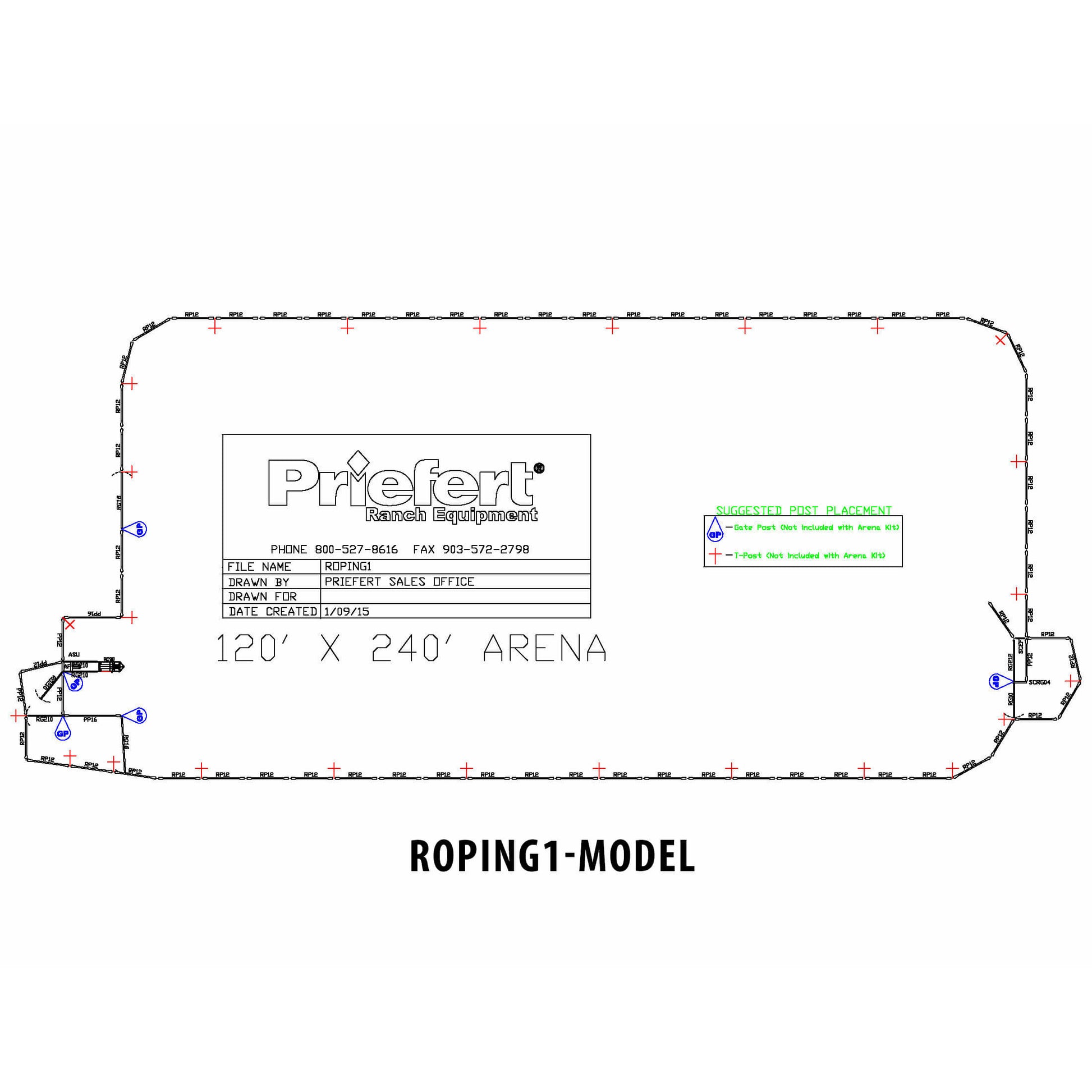 While the idea of having your own roping arena is appealing, the thought of designing and building an arena is often a daunting one. Not to worry, this is where the experts at Priefert Ranch Equipment can help. Priefert is proud to offer a number of pre-designed arena kits. Priefert’s Roping Arenas provide a safe and attractive area for riding and practicing. Our “Bare Bones” Roping Arenas are 120’ wide by 240’ feet long and includes the essentials needed for a roping pen. This arena layout is available in two different panel options: Economy or Utility. Priefert’s Economy Panels are our most economically priced panel and are proof that you don’t have to sacrifice quality or durability to save money. Our Utility Panel is our number one selling “Horse-Safe” Panel, offering a number of safety features not found on competitor’s panels. Priefert panels feature chain connectors to ensure tight connections and offer increased versatility to allow for connections over uneven ground. An Architectural Grade Powder Coat Finish helps the panels to resist rust, scratches, and fading to add years of life to your investment.