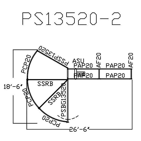 PS13520-2 135 Degree Premier Open Sweep with 16’ Alley – 20 Model