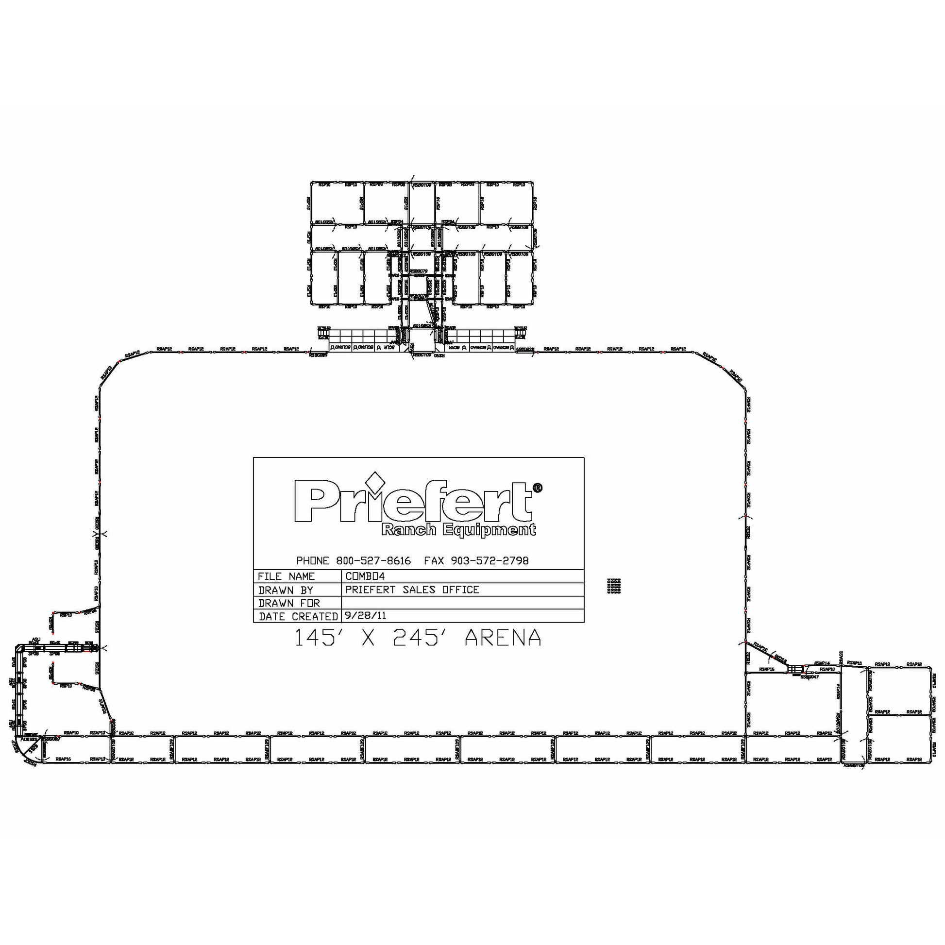 This combination arena kit features a 145’ x 245’ arena with a timed event and rough stock event setup. This arena is ideal for practicing or hosting competitions. This layout also includes holding pens for both rough stock and timed-event stock. The rough stock area is setup on the long side of the arena and includes a 10’ wide alley and a Rough Stock Stripping Chute setup. The timed event setup is at one end of the arena, with a Stripping Chute and holding pens at the opposite end. The lead up alley for the roping chute is connected to these holding pens with a 10’ wide return alley. Each component of this arena features an Architectural Grade Powder Coat Finish to add years of life to your investment by helping the product resist rust, scratches, and fading.