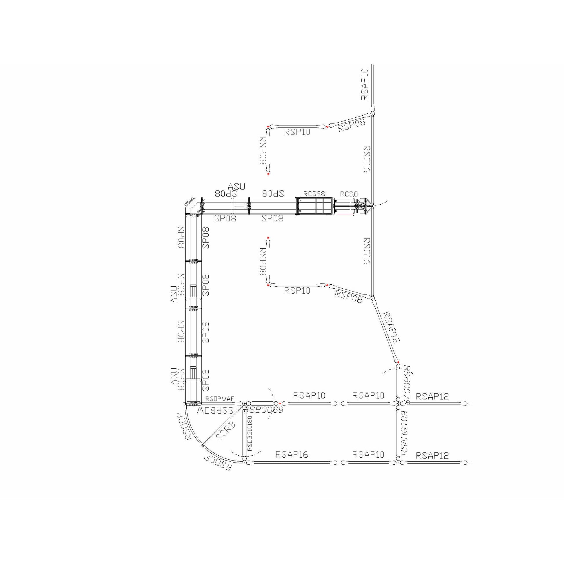 - This layout also includes a Rough Stock Stripping Chute setup and a full set of holding/back pens.