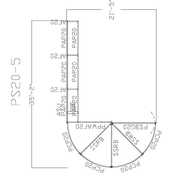 - PS20-5 includes: 1- Premier Sweep Bow Gate (PSBG20), 1- Premier Panel with Alley Frame (PPWAF20), 4 - Premier Curve Panels (PCP20), 3- Sheeted Sweep Radius Bars (SSRB), 6- Premier Alley Panels (PAP20), 3- Alley Frames (AF20), and 1- Universal Alley Stop (ASU)