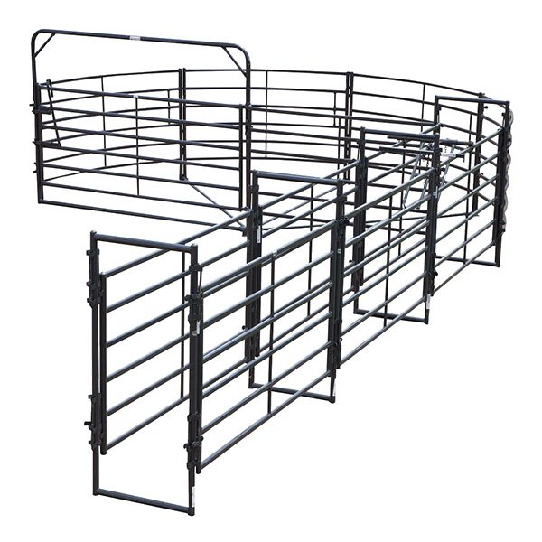 - This 180 degree sweep is easily reversible so that cattle can be loaded from either side of the working alley, and can be expanded into a complete corral system with the purchase of additional pieces.