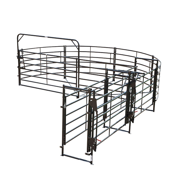 - This 180 degree sweep is easily reversible so that cattle can be loaded from either side of the working alley, and can be expanded into a complete corral system with the purchase of additional pieces.