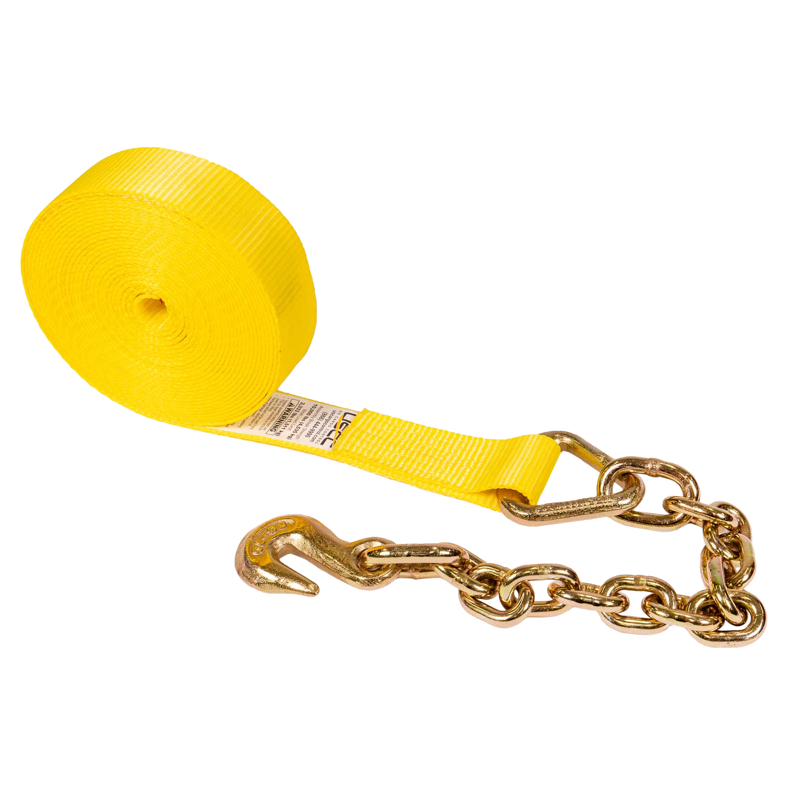 2" x 30' Winch Strap with Chain Extension | Yellow
