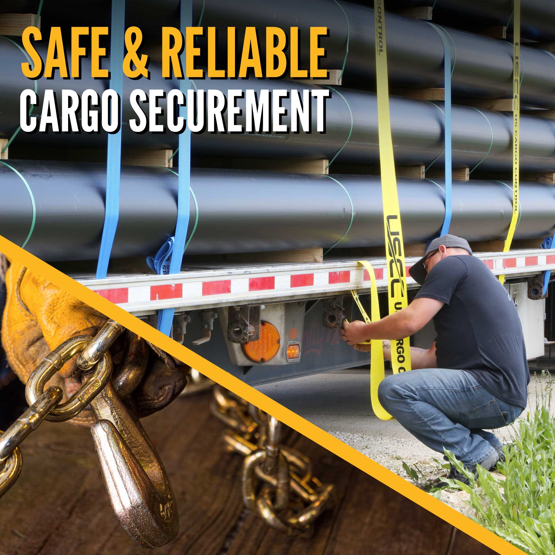 All of our trailer winch straps are tagged and stenciled with the working load limit to meet FMCSA and DOT regulations, CVSA and WSTDA guidelines, and North American Cargo Securement standards.