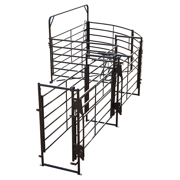 - The 10’ wide sweep gate pushes cattle into the working alley. This gate features a 7’ tall bow frame for added stability and a Double Piston Lever Latch.