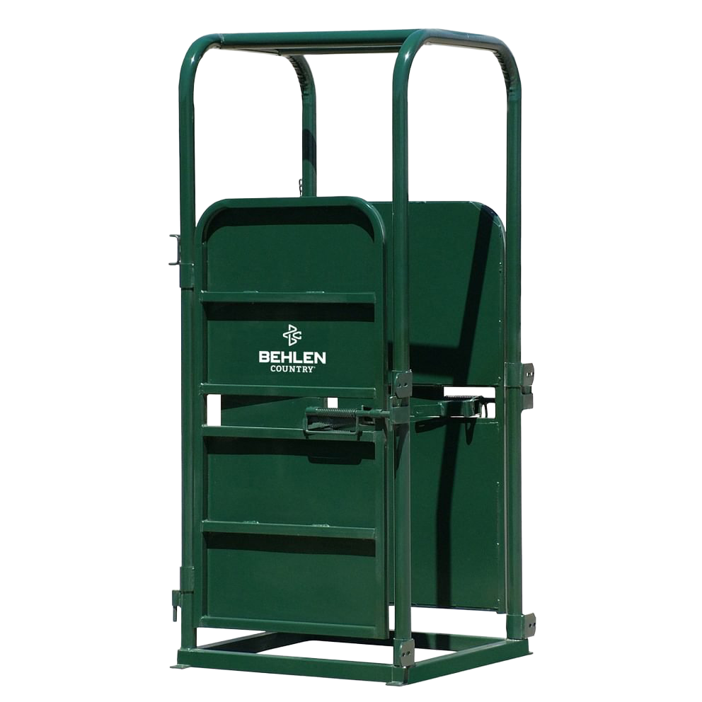 The A.I. Cage provides a safe, convenient access area behind the chute. Sheeted double doors self lock to block the alley and keep you safe. Attaches to any Behlen Country squeeze chute and allows quick access to the opposite working area.