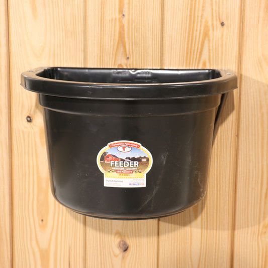 This durable feeder bucket attaches securely to the inside of Priefert’s Premier Stall Front, eliminating spills (Priefert’s powder-coated mounting bracket is sold separately). The bucket is composed of high-impact polyethylene plastic, allowing it to stand up to tough farm use. It is a great way to feed grain, pellets, or other feeds, and will hold up to 20 quarts.