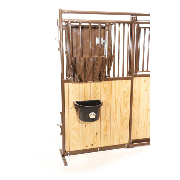 - This durable black feeder bucket can easily be attached to the inside of Priefert’s Premier Stall front (powder-coated mounting bracket sold separately).