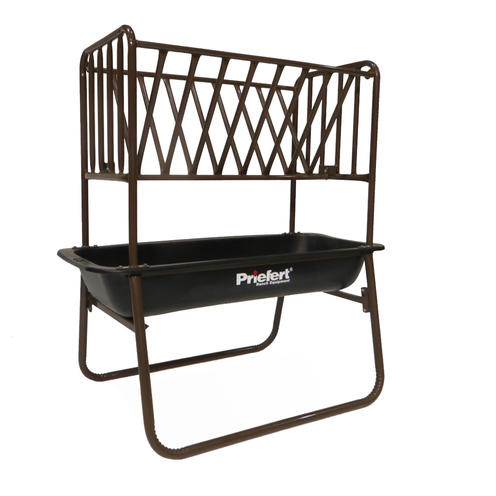 Available as individual components or as a feeder and hay rack combo, this 5' bunk style feeder features a poly feed tub and is powder-coated brown.