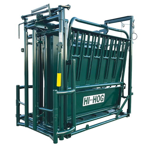 To use this option, you will require an existing hydraulic system equipped with a valve and pump. If you already have a Hi-Hog hydraulic cattle squeeze with an extra valve you have what you need. Using the hydraulics from a tractor will also work. You will require 1200 psi to operate the tipping action.