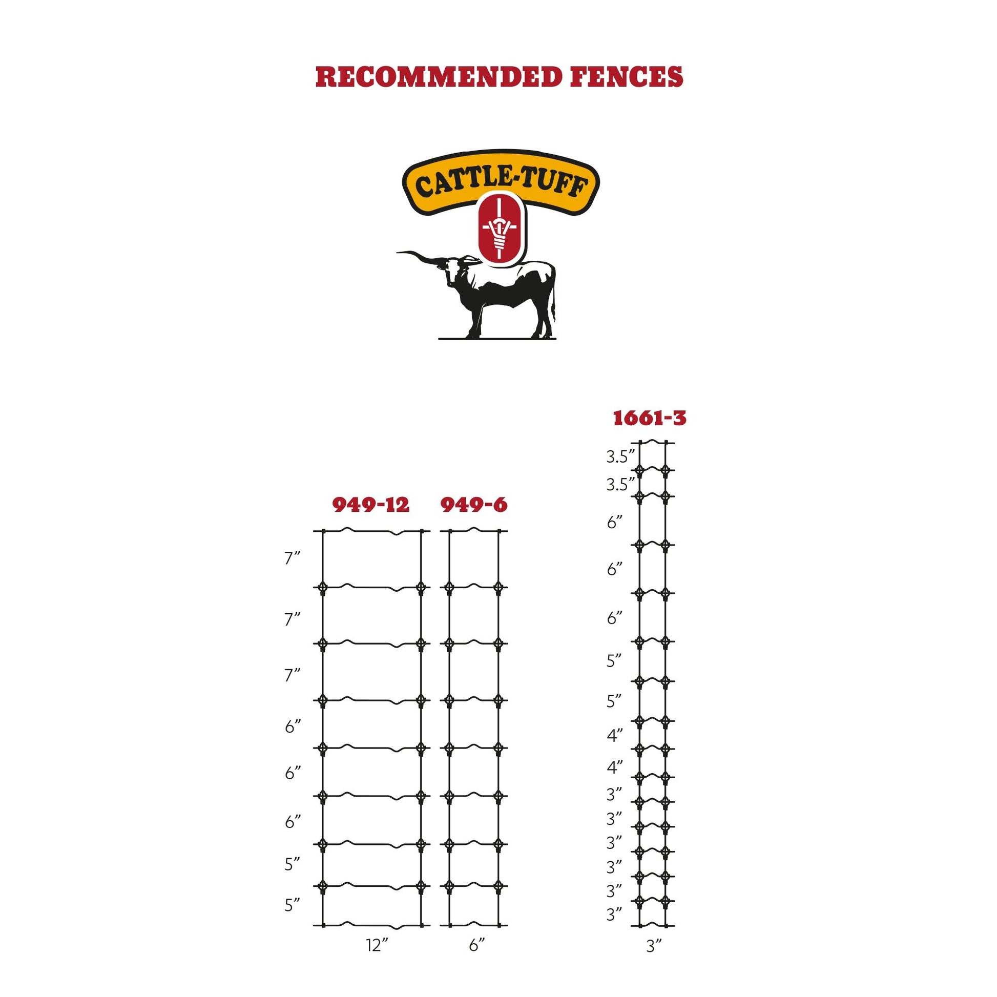 | 1661-3 | Corrals, high pressure areas | Higher fence, 3" spacing for maximum strength and animal control |
