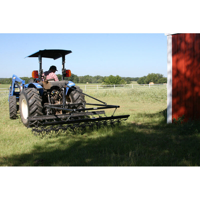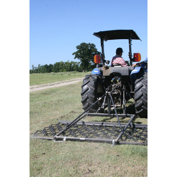 Priefert’s Chain Harrows with Lift Kits are built for light or heavy duty grooming of arenas, pastures, food plots, driveways, lawns, poultry houses, and more. The harrow mat is constructed from heavy, durable, high carbon, heat-treated steel. The ½” chain-style mat features a “double tine” design that makes it a perfect solution for spreading fertilizer on hay fields, land leveling, etc. Each digging tine is 4” long. This versatile tool can easily be attached to your tractor’s 3-point hitch. The Lift Kit allows for complete control over your harrow and makes for easy transporting. The Draw Bars and Lift Kit feature an Architectural Grade Powder Coat Finish with UV inhibitors to add years of life to your investment by helping the product resist rust, scratches, and fading.