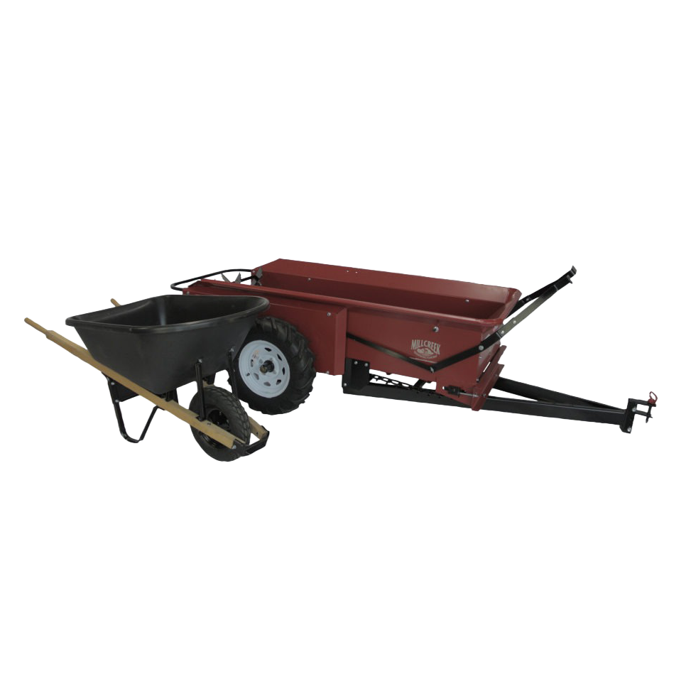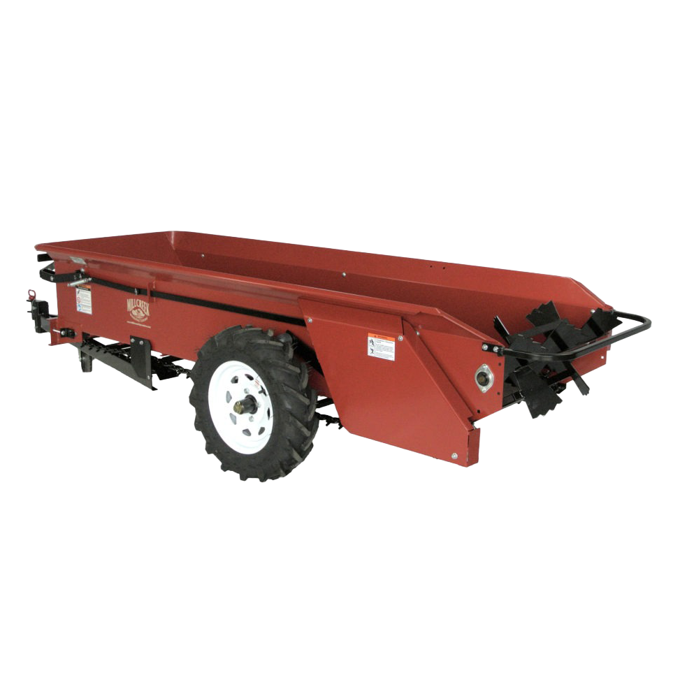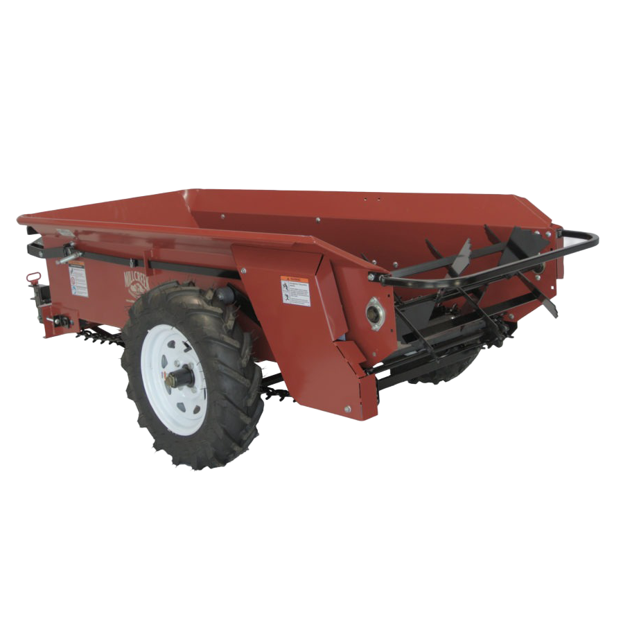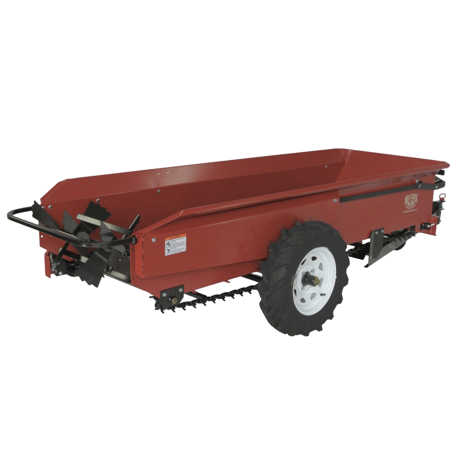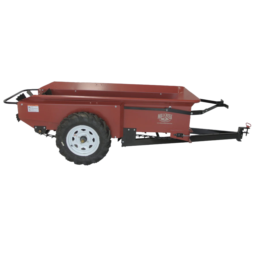 Tow or wheel a compact manure spreader through doors as narrow as 4′ wide. Hook it up to your garden tractor or ATV, load and drive to a nearby field or pasture to spread.