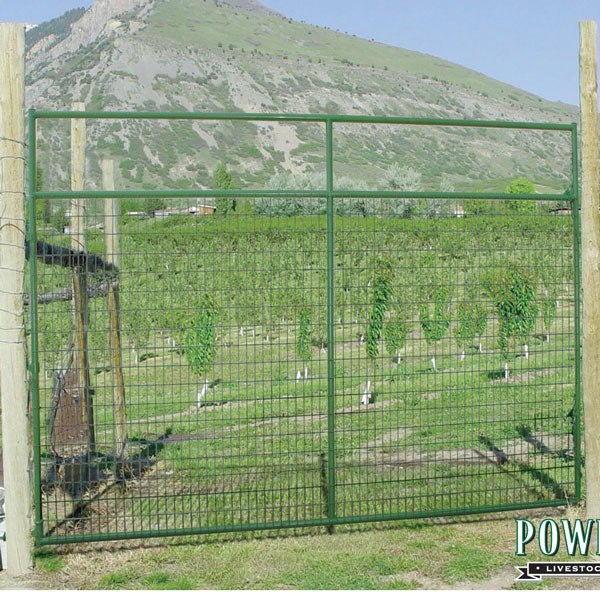Powder River’s Deer gates are designed to keep those high jumping deer out of your haystacks, orchards, vineyards, gardens, wherever you need them out of. Available in a variety of sizes from 6' to 12' these tall gates end up at over 8' tall once they are installed. They come with 2 chain latches, one low and one high. The post attachment for this gate consist of (3) 12" long threaded bolts. The wire fill is a 2" x 4" 8 gauge wire grid. The frame is constructed from 16 gauge 1 5/8" OD tubing. The gates are finished with a durable green powder coat.