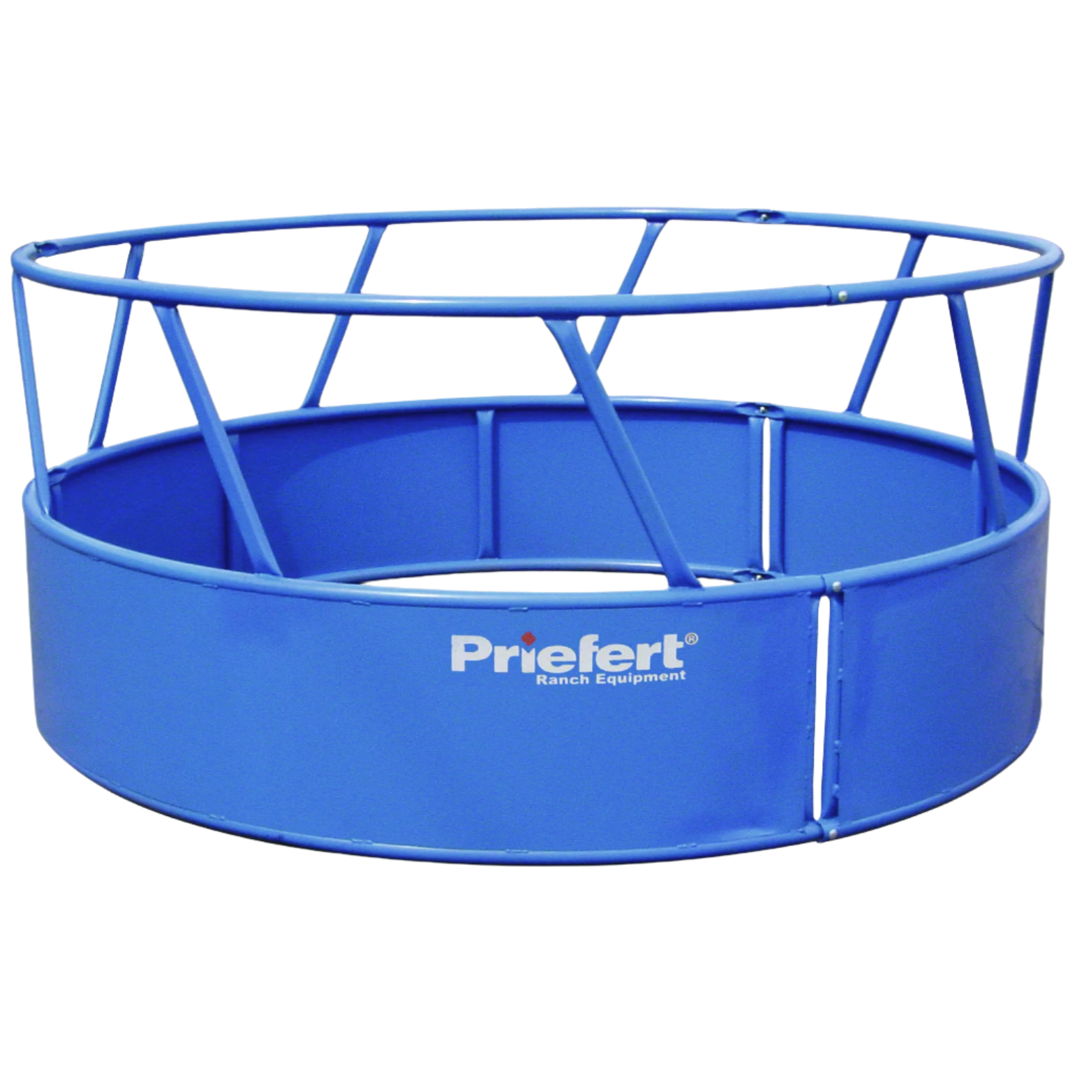 Priefert's Economy Bale Feeders are powder-coated blue, available in a skirted or open configuration, and are great for the price conscious customer.