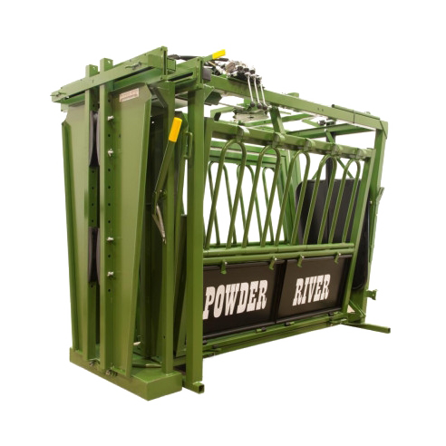 All 2000 series chutes feature a similar chassis with features that include: Split Rear tailgate with two points of control, Adjustable width floor, Side exit gate with safeties, Dual Sided V-Style Squeeze, Rack and Pinion center squeeze on manual and hydraulic models.