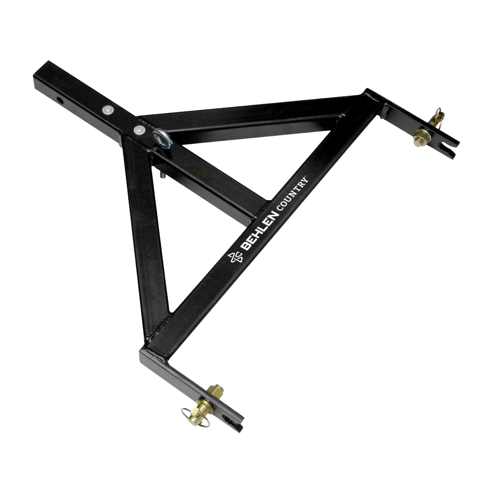 Turn your side-by-side, ATV, or UTV into a compact tractor with the Hitch N' Plow from Behlen Country! This innovative adapter, combined with a winch acting as the top link, lets you use standard, non-PTO Category 1 implements with any 2" receiver hitch.