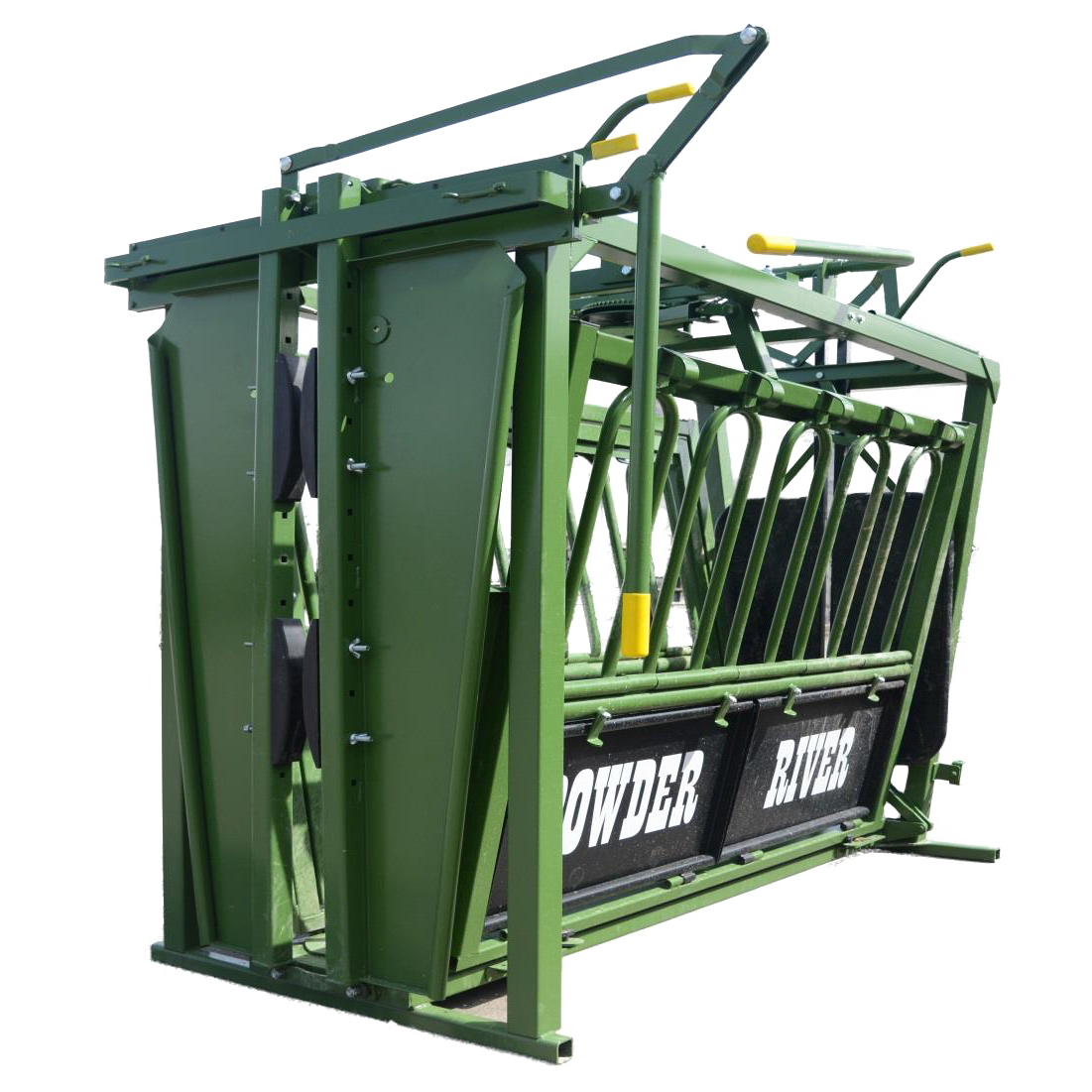 | Kick Panels Are Available On Every Chute That Powder River Produces. Split Kick Pans On Our 2000 Series Chutes Provide Quick And Easy Access To The Animals Legs Or Underside. Our Easy Kick Panel Latches Make For Trouble-Free Operation. Kick Panels Are Also Easily Removable If Needed. All Powder River Kick Panels Are Powder Coated For Durability. | Powder River’s Squeeze Is Superior In The Market. Not Only Does It Provide Superior Leverage For The Operator, Utilizing A Double Sided V-Squeeze Centers And Supports The Animal, Keeping It Calm And Reducing Stress. The V-Squeeze On Powder River Chutes Is Adjustable For Floor Width Depending On The Size Of Animals Your Running Through The Chute. |