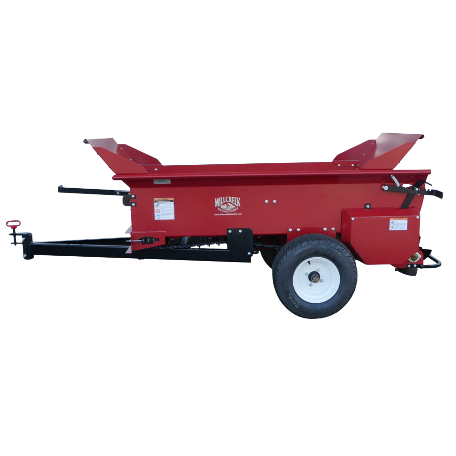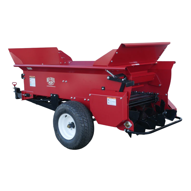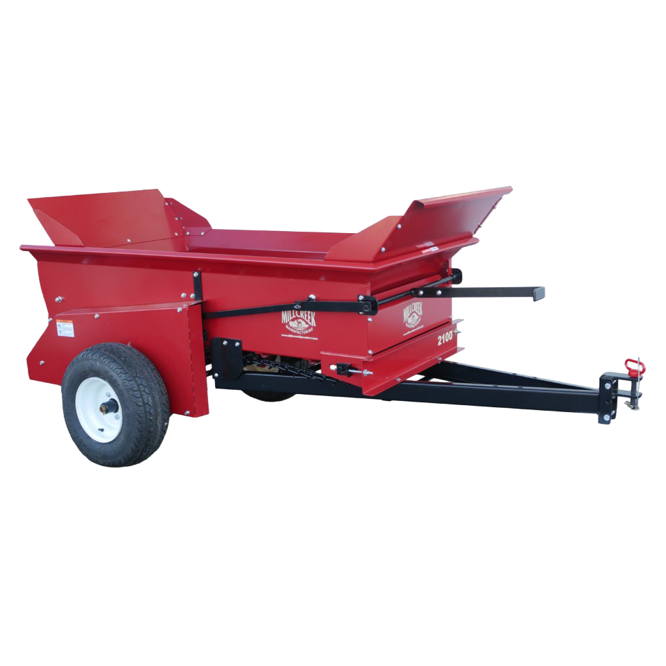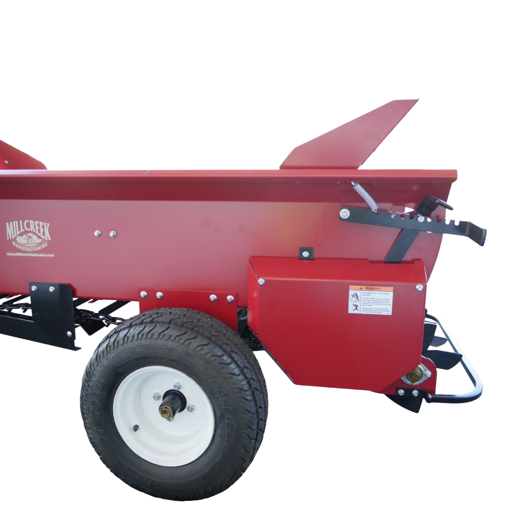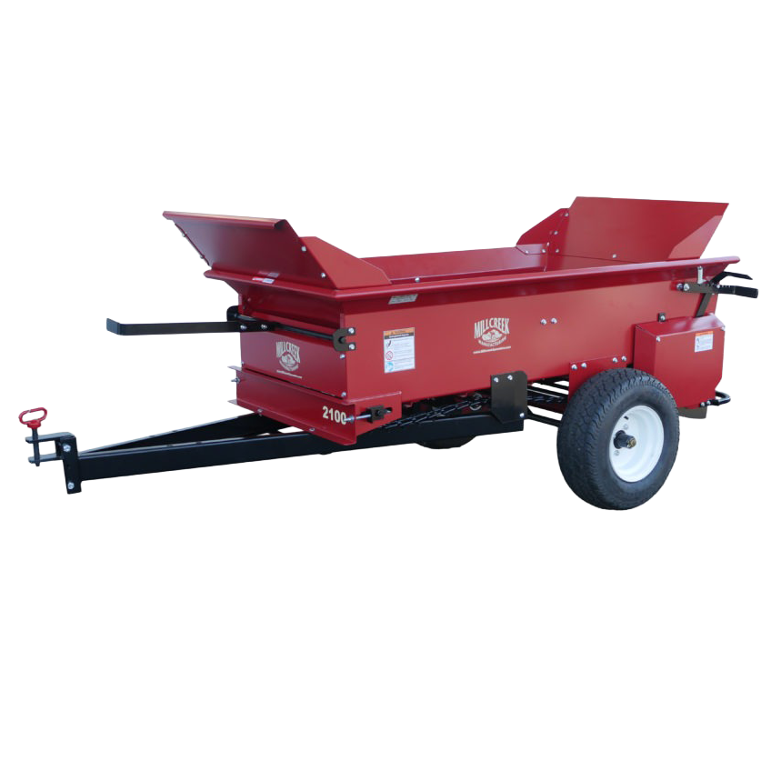 The Millcreek 2100 Precision Spreader is designed to apply all kinds of bulk material with precision, power and speed. These topdressers feature 13 gauge, all steel construction, a powder coated finish and our signature poly floor boards–making these compost spreaders the longest lasting on the market today.