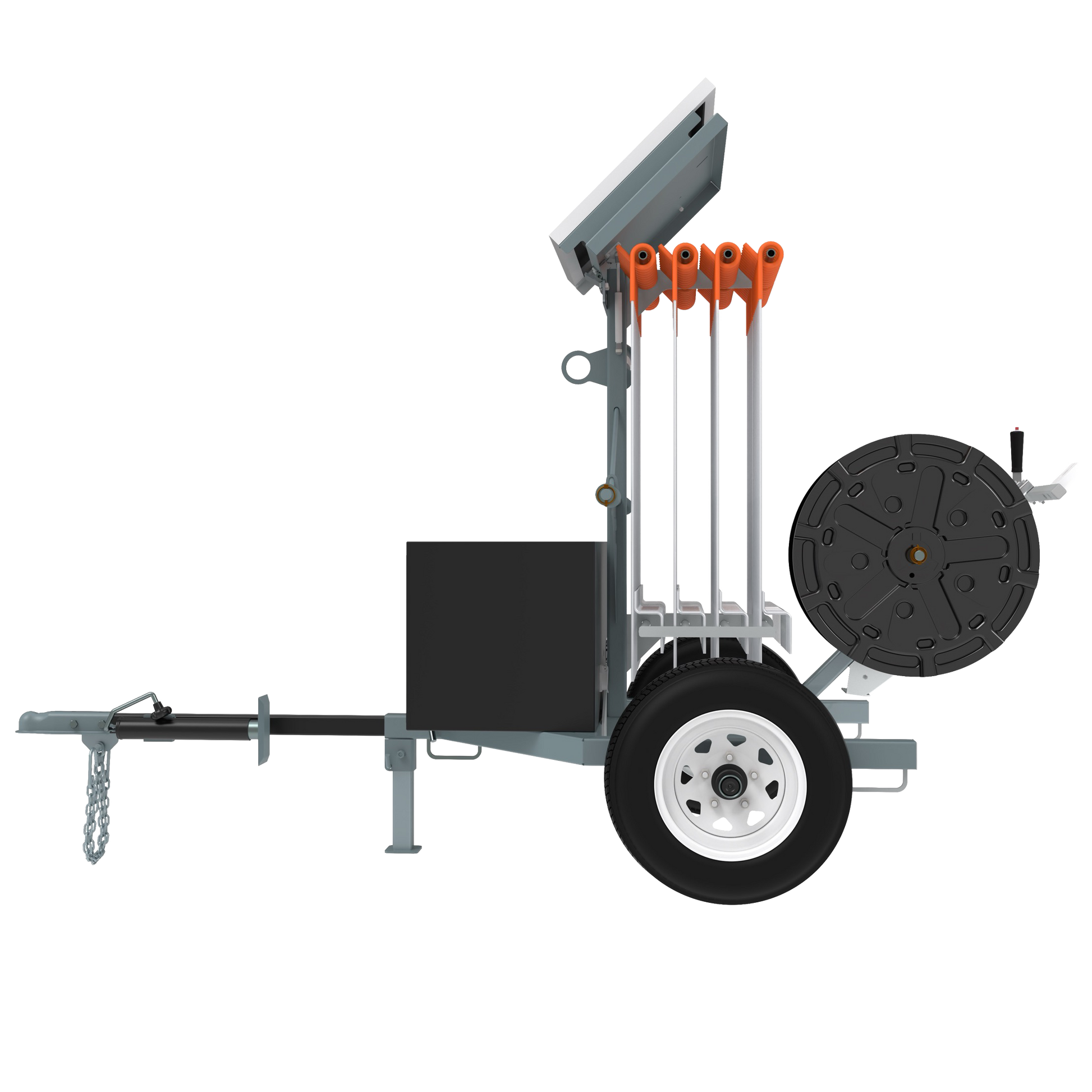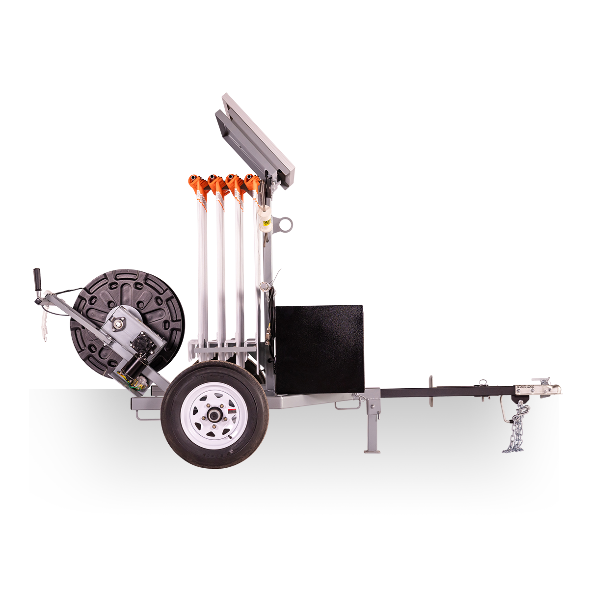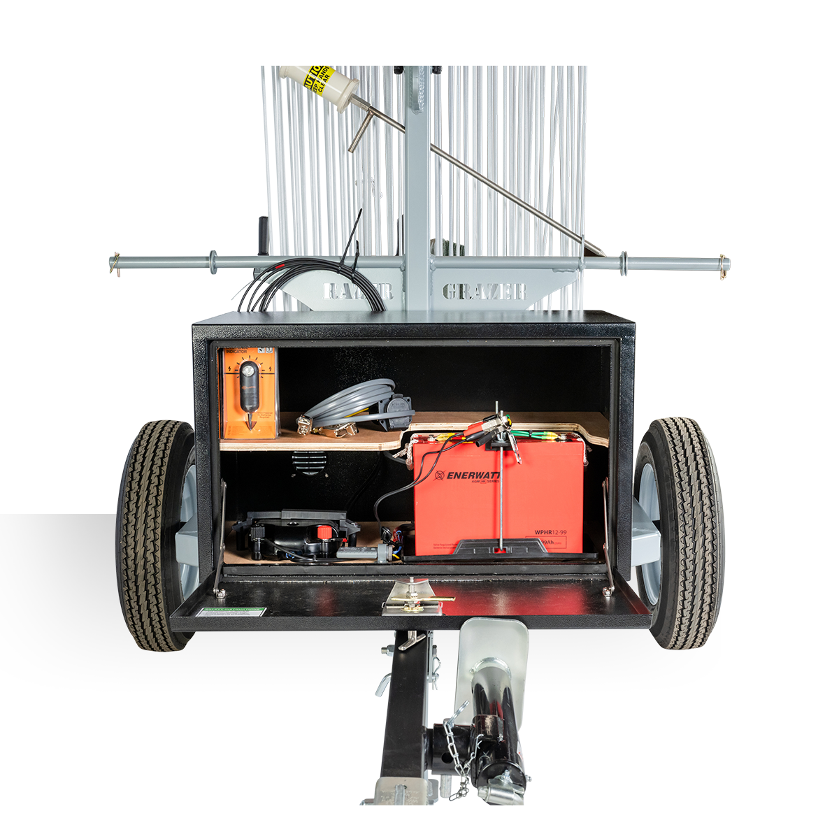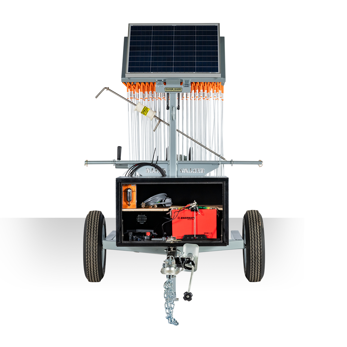The Razer Grazer™ is Range Wards' most popular, all-in-one portable fencing solution. Each Razer Grazer comes with the innovative Power Arm™ and can hold up to 3 reels of Power Braid™ reflective rope.