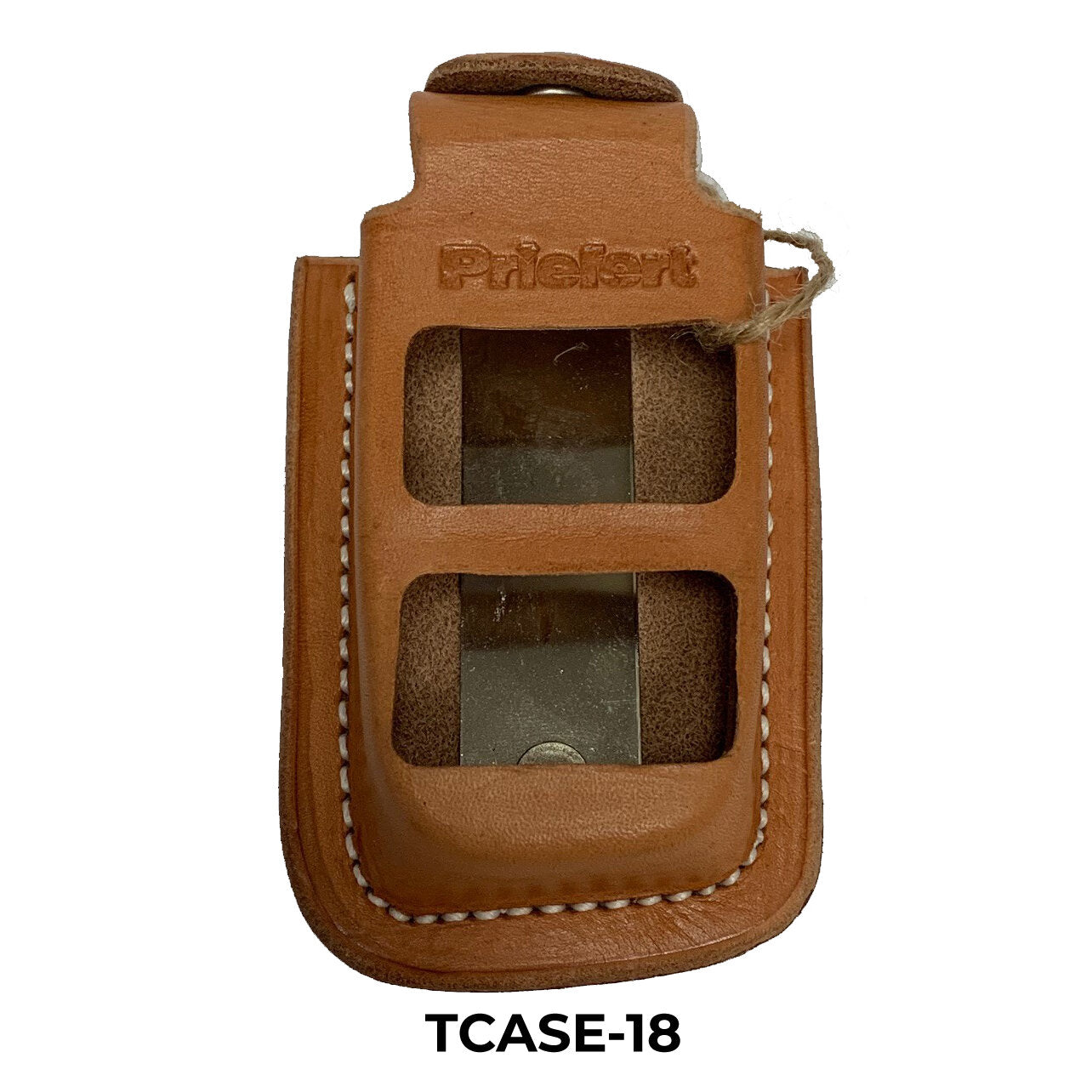 - Priefert also offers a durable, stitched leather case that fits most of its remote controls. This case features a metal belt clip, a fold-over snap to secure the remote in place, and is embossed with the Priefert logo.