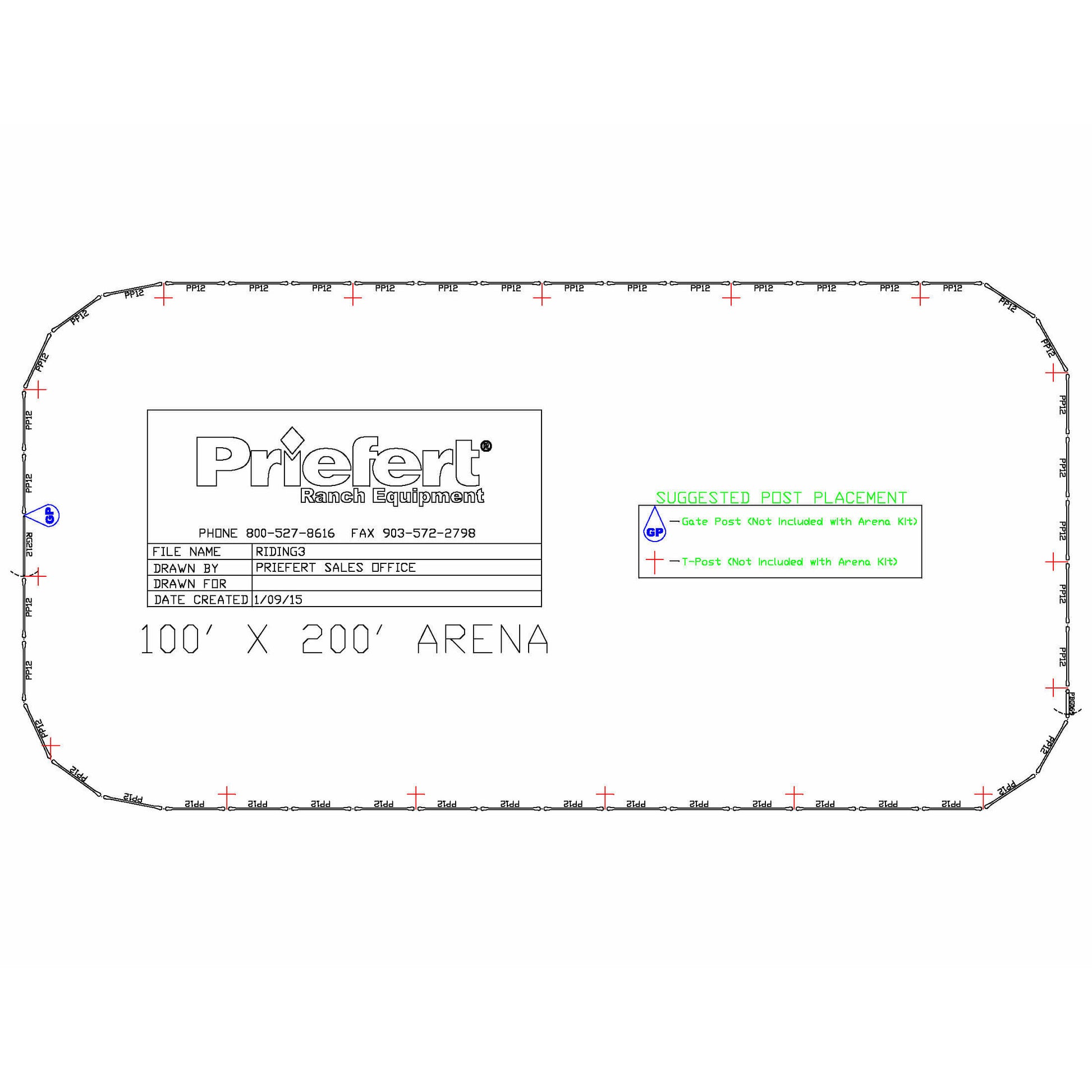 - Our standard Riding Arenas are 100’ wide by 200’ long and include a single 12’ gate, as well as a 6’ x 9’ bow gate.