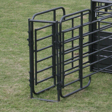 This durable, powder-coated alley frame is designed for use with Priefert Rough Stock Panels to maintain alley strength and consistent width.