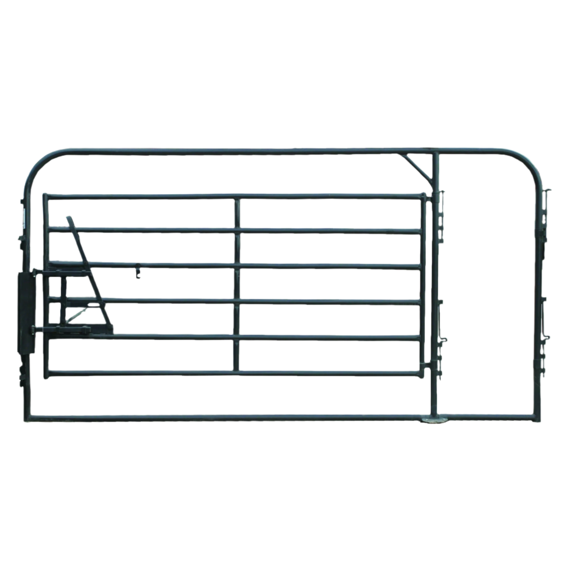 Specifically designed for use with Priefert Rough Stock Open Sweep Systems, the RSOBG serves as the sweep gate and features a Double Piston Lever Latch. The RSOBG also includes the initial opening into the crowding alley and stable connection points for the Rough Stock Radius Bars and Radius Bow that help maintain the correct radius for the sweep. This product features an Architectural Grade Powder Coat finish to help it resist rust and scratching, while UV inhibitors in the powder help the Alley Frame resist fading, ensuring that your product holds up well and looks great for many years to come.