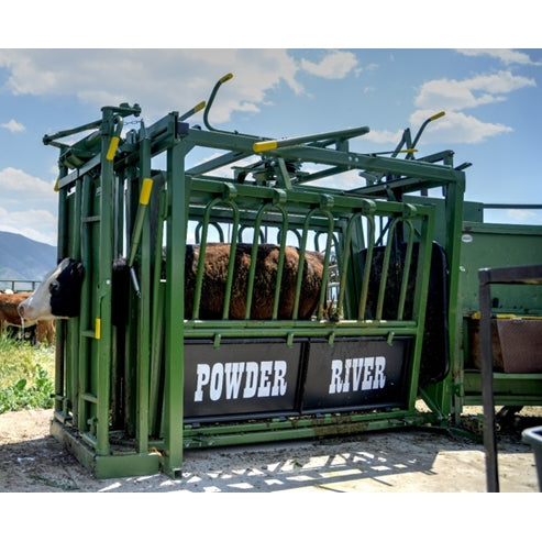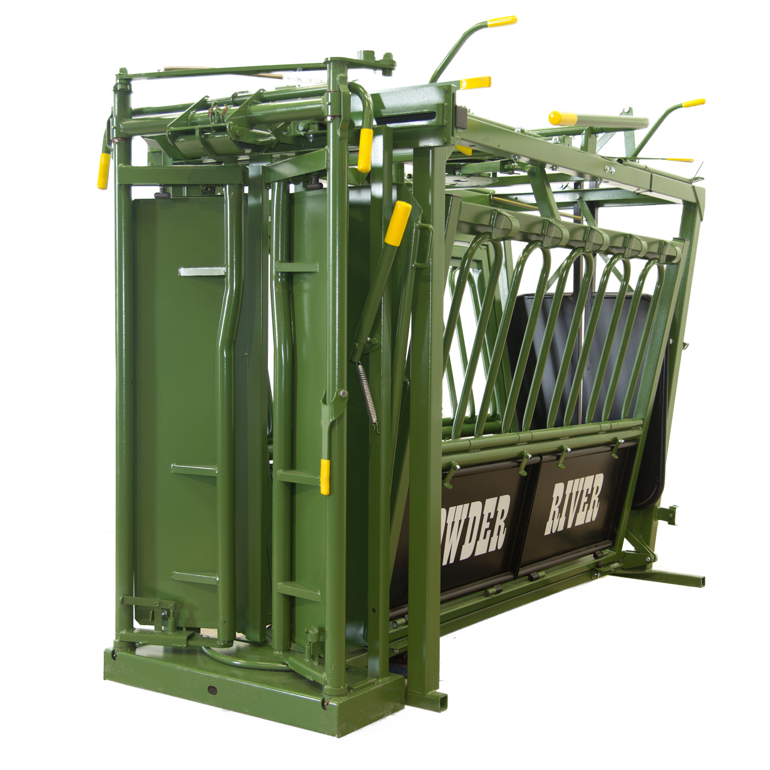 | Kick Panels Are Available On Every Chute That Powder River Produces. Split Kick Pans On Our 2000 Series Chutes Provide Quick And Easy Access To The Animals Legs Or Underside. Our Easy Kick Panel Latches Make For Trouble-Free Operation. Kick Panels Are Also Easily Removable If Needed. All Powder River Kick Panels Are Powder Coated For Durability. | Powder River’s Squeeze Is Superior In The Market. Not Only Does It Provide Superior Leverage For The Operator, Utilizing A Double Sided V-Squeeze Centers And Supports The Animal, Keeping It Calm And Reducing Stress. The V-Squeeze On Powder River Chutes Is Adjustable For Floor Width Depending On The Size Of Animals Your Running Through The Chute. |
