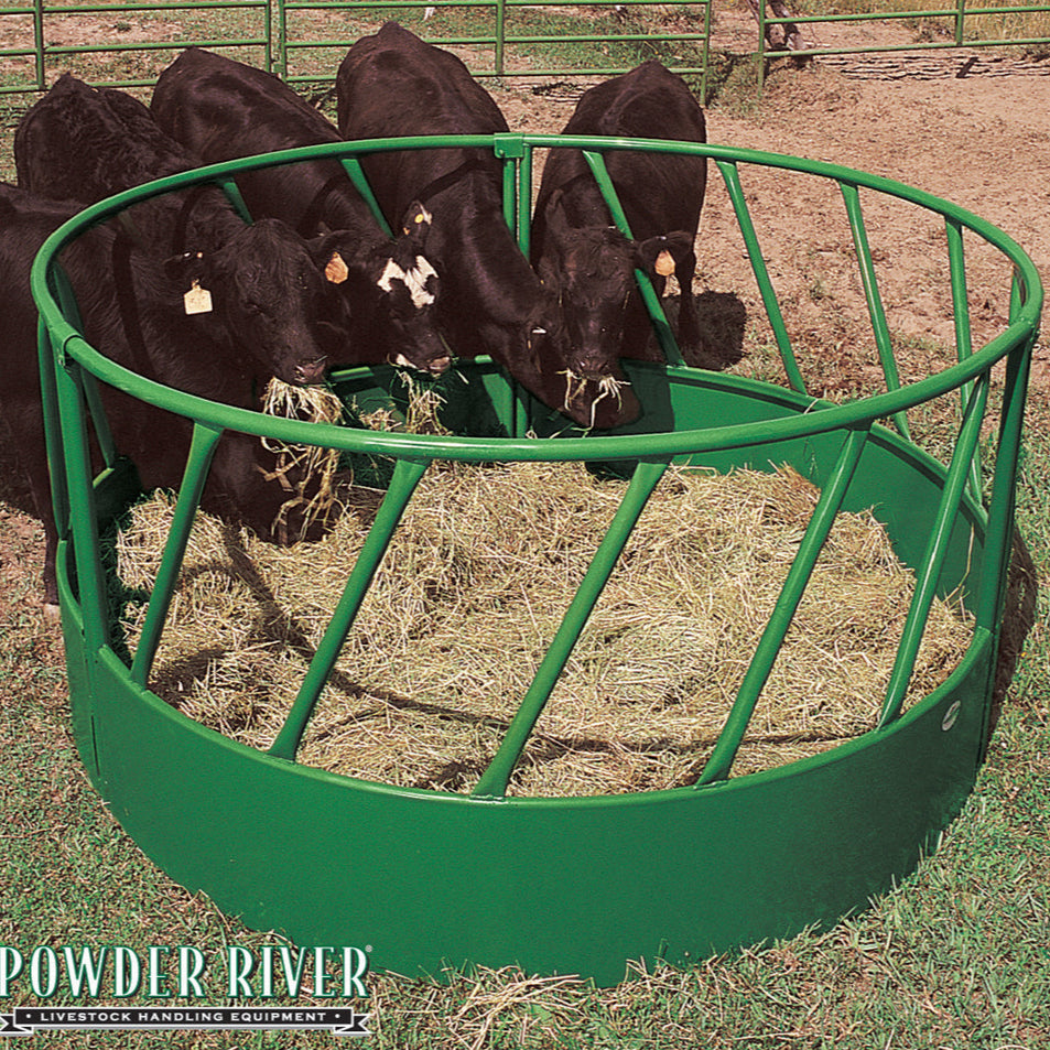 Our Slant Bar Round Bale Feeder is a great value. The panels are made from 16-gauge, 1.66-inch tube. The 18-inch high pan is made from one single piece of 16-gauge sheeting, which means you get a stronger, more durable feeder for your money. Improved panel connectors allow the feeder to be easily and quickly assembled with just three bolts. This feeder is available with or without legs.