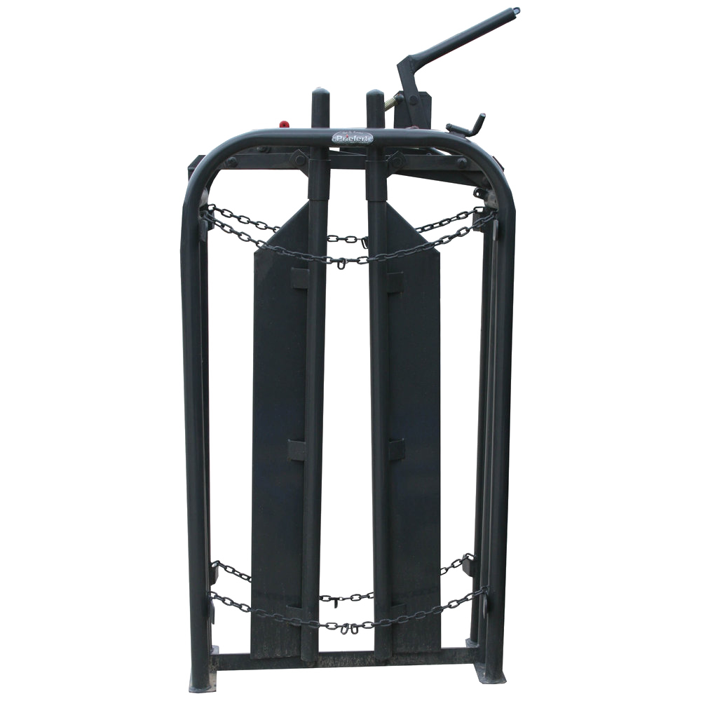 Priefert’s Stripping Chute Release Gate is designed for use with our Stripping Chute Entry Frame (sold separately) to create a “Stripping Chute” in a return alley. The entry frame and release gate are often set on either end of two 8’ long panels or gates to create a safe area for removing ropes and/or head wraps from steers. The Stripping Chute Release Gate serves as a blocking gate and locks in the down/closed position to keep the steer in the “stripping” area until all ropes have been removed. Once the steer is ready to be released, simply pull down on the release lever to open the gate. This gate features chain connectors on each side that allow for quick, easy, and secure connections to be made. An Architectural Grade Powder Coat Finish with UV inhibitors adds years of life to your investment by helping the product resist rust, scratches, and fading.