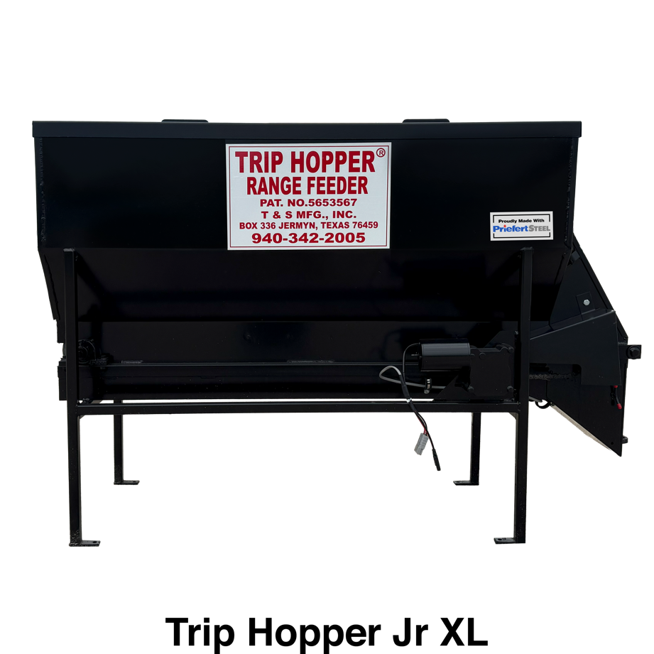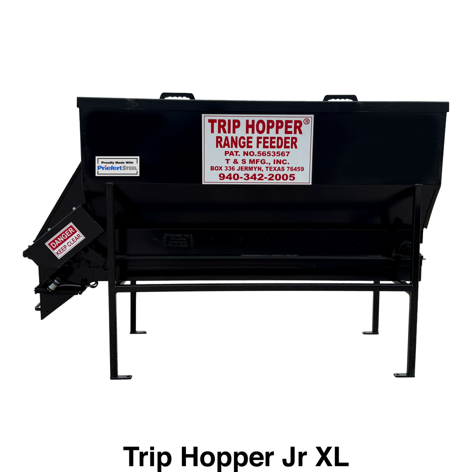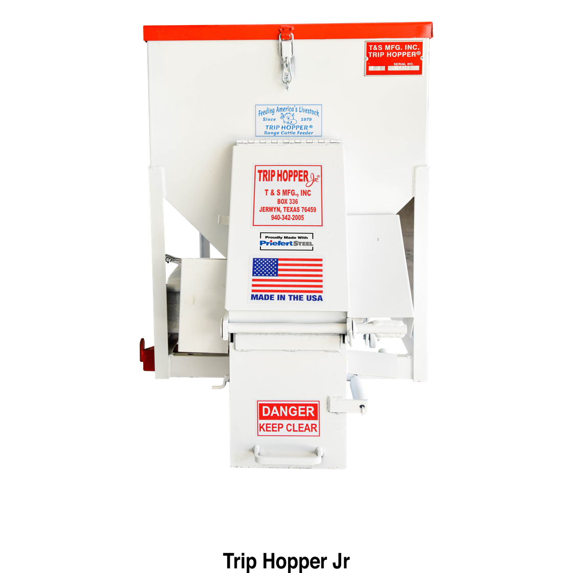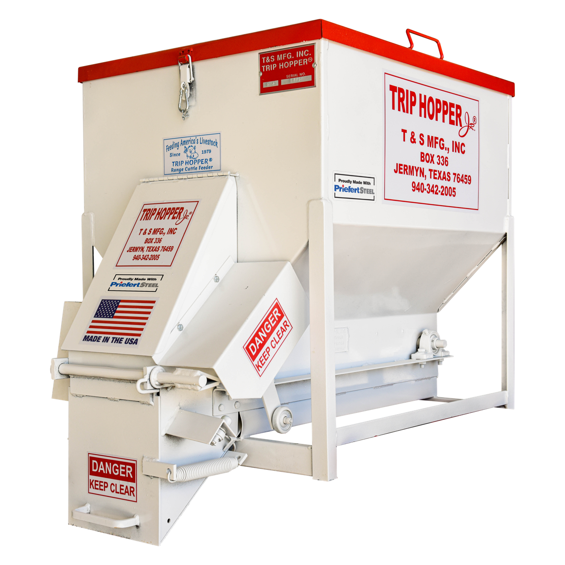 - Trip Hopper Range Cattle Feeders work with any size of feed cubes or alfalfa hay cubes, along with ground feed and grain mixture.